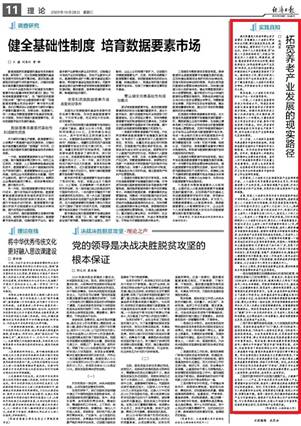 教师张鸿琴署名文章《拓宽养老产业发展的现实路径》。