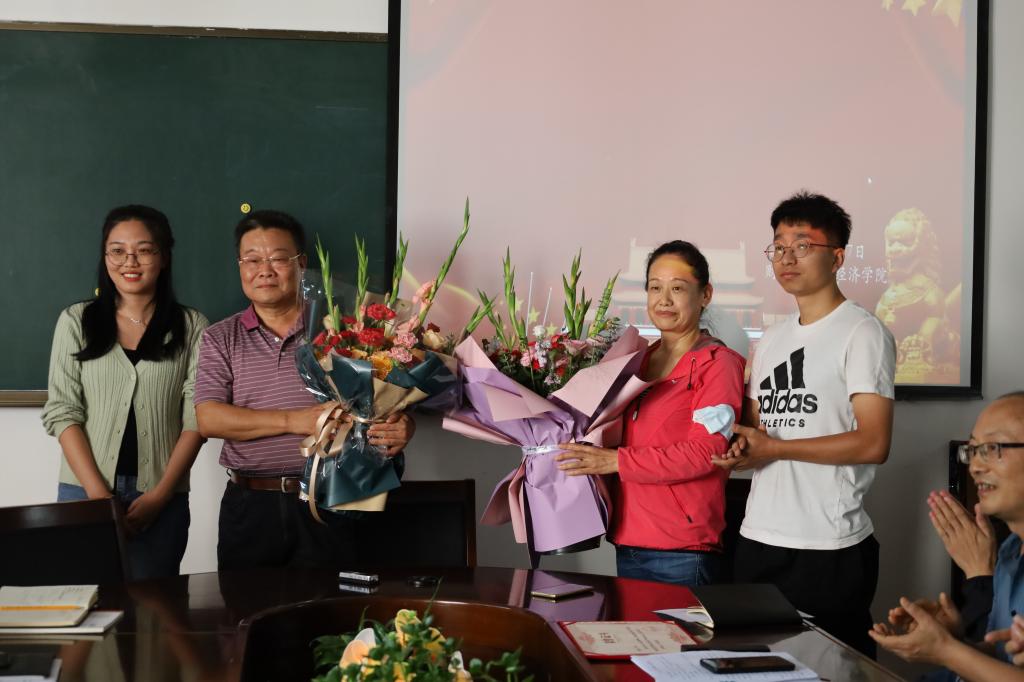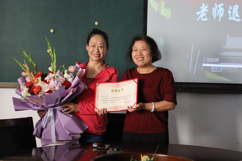 全体教职工相聚一堂,为光荣退休的谭建立、郭惠英两位教师举办了一场温馨的退休教师欢送会。