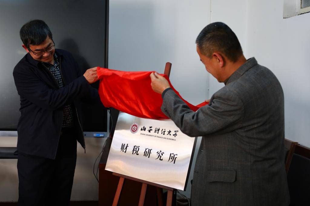 党委书记高岳及财税研究所所长昝志宏为财税研究所揭牌