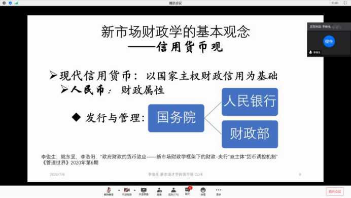 讲座最后李教授进行总结并提出展望:现代信用货币具有财政属性。国库集中收付制度是政府财政调控货币的制度基础,财政的货币功能由政府财政部门依法控制,不受央行左右。