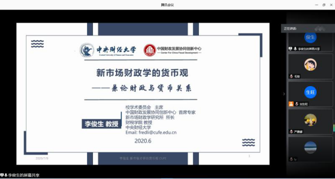 刘生旺副院长主持了此次会议,彭月兰院长、赵文生副院长等众多老师和同学出席了本次会议。李教授的讲座以财政学的发展和本次疫情为背景,分享了他关于财政与货币关系的独到见解,老师和同学们都受益匪浅。