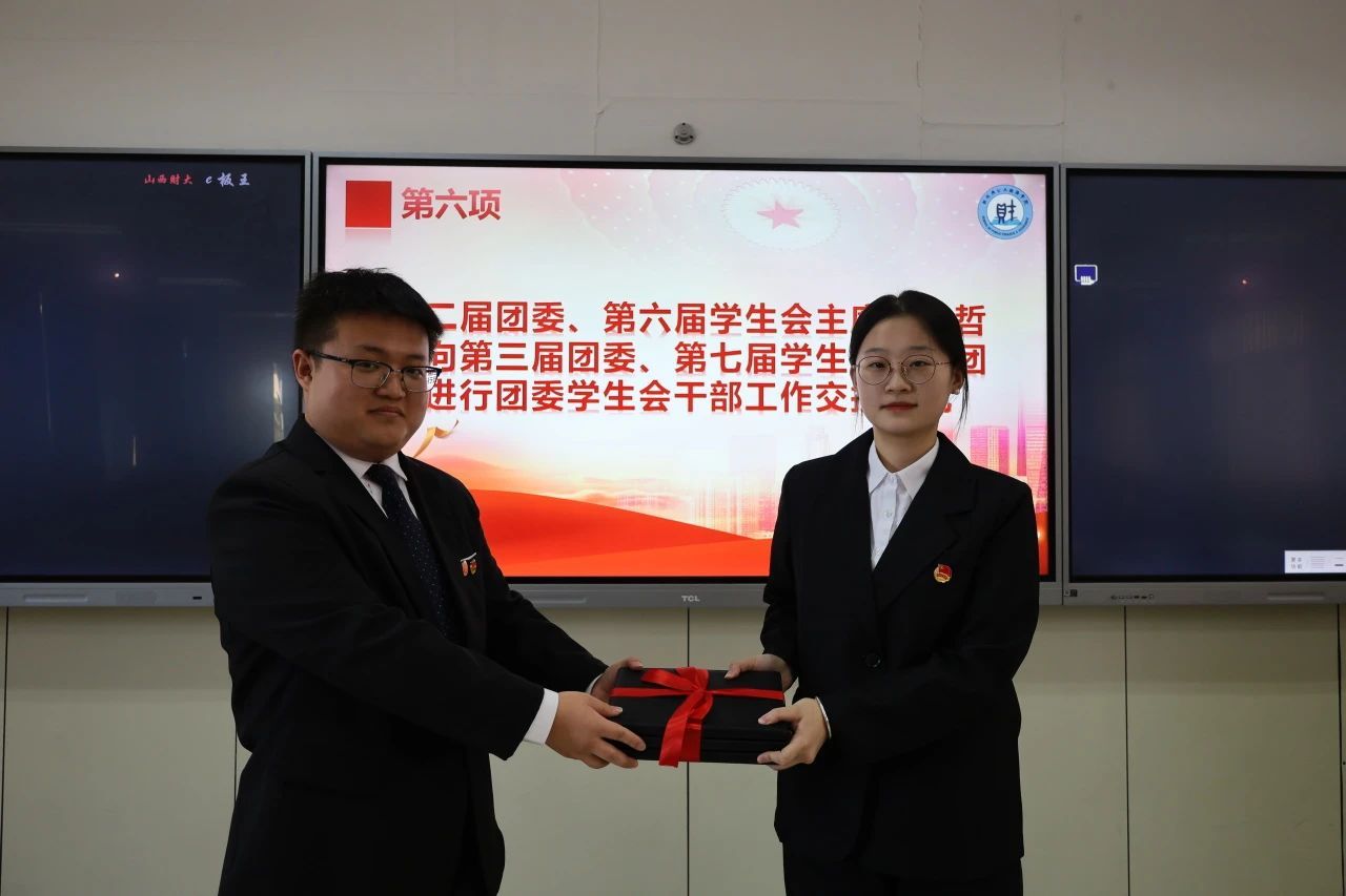 第三届团委第七届学生会执行主席江思颖进行交接仪式并作就职发言,江思颖对学生会成员提出以下三点要求,一是要不断磨炼自身能力、提高自身素质,成为一个德才兼备的优秀学生干部;二是要有凝聚力,纵向加深各部门内部感情,横向加深部门之间的联系;三是要有生命力,秉持为学生服务的宗旨,加强与校级组织的沟通交流,发掘自身潜能、积极创新。