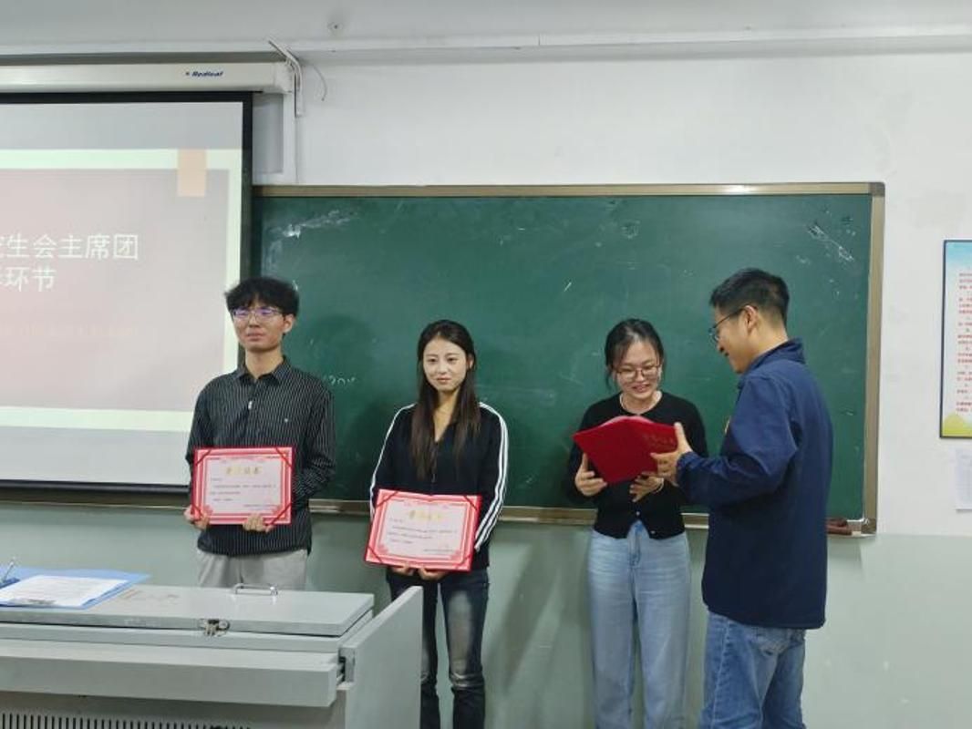 表彰环节,贺伟朝为第六届研会工作表现优秀人员颁发荣誉证书,感谢他们任职期间的努力付出和无私奉献。他鼓励新一届成员传承优良作风,以同学需求为导向,主动创新、凝聚合力,切实履行职责,助力世界杯赛程