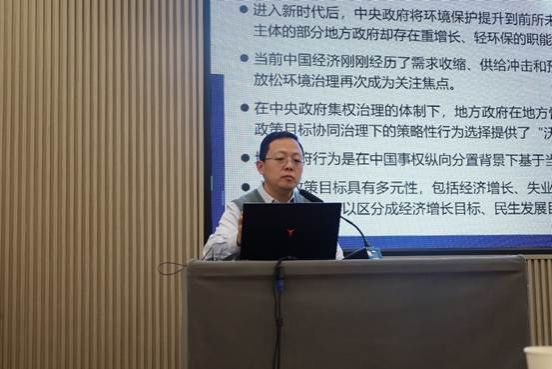 童健老师做了“地方政府多元目标治理与城市绿色转型长效机制建设”的专题分享。地方政府往往在多元目标协同治理过程中以上一级政府经济绩效目标为核心,这就造成地方政府在经济增长锦标赛下短期经济行为动机的出现。童老师从地方政府多元目标治理视角研究低碳城市试点政策的减排效果,以低碳城市试点政策为准自然实验,研究地方政府多元目标协同与掣肘情形下政策实施效果的差异性,并得到了一系列的结论与政策建议,具有非常重要的实际意义。