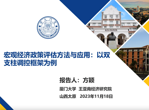 厦门大学党委常委、副校长方颖教授做了“宏观经济政策评估方法与应用:以双支柱调控框架为例”的主旨报告。方教授从基本的结构化模型、模型误设风险,基于Rubin因果模型的宏观经济政策评估方法、减少模型依赖、模型可检验性等效性等方面进行了阐述。方教授指出,在实践中,由于货币政策与宏观审慎政策在政策目标和传导渠道方面的相互关联,导致二者具有重要的协调问题,分析了不同的货币政策与宏观审慎政策组合的政策效应,进而得出在不同情况下使用对应的政策组合可以最大限度地实现政策目标,具有极强的现实意义。