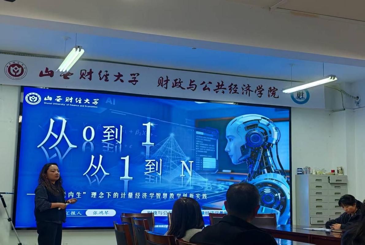 张鸿琴老师于修德楼智慧教室,以“从0到1到N——‘赋能内生’理念下的计量经济学智慧教学创新实践”为主题,面向全院教师系统分享了其参加中国高校财经慕课联盟第三届“同课异构”教学竞赛并荣获一等奖的完整历程与深度思考。