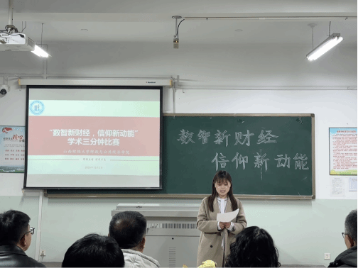 “学术三分钟”活动在立信楼310教室顺利举行。本次活动以“数智新财经,信仰新动能”为主题,旨在全面提升学生的专业素养,着重锻炼其学术表达能力,生动展现财政与公共经济学科的现实价值,传递“学以致用”的专业理念。为保障活动评审的专业性与权威性,本次学术三分钟活动邀请到多位专业教师组成评委团,具体包括刘艳、肖春明、李春生、康琛宇、张亚璟及毛琦六位老师。
