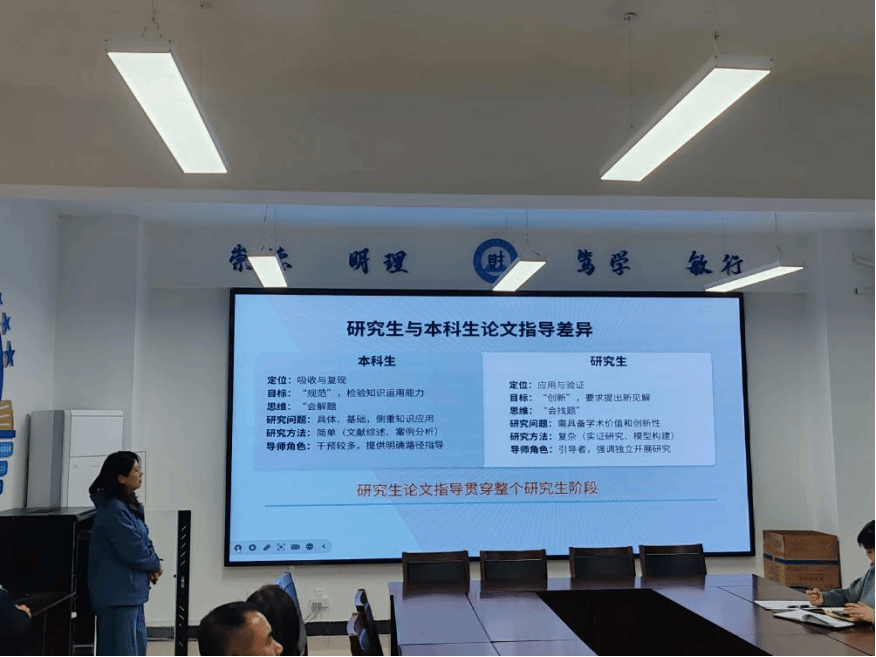 一是针对学生职业规划多元的问题,强调“因需施导”,建议在入学初期通过深度沟通了解学生发展诉求,据此制定差异化的论文指导计划,实现学业与职业发展的有效衔接。